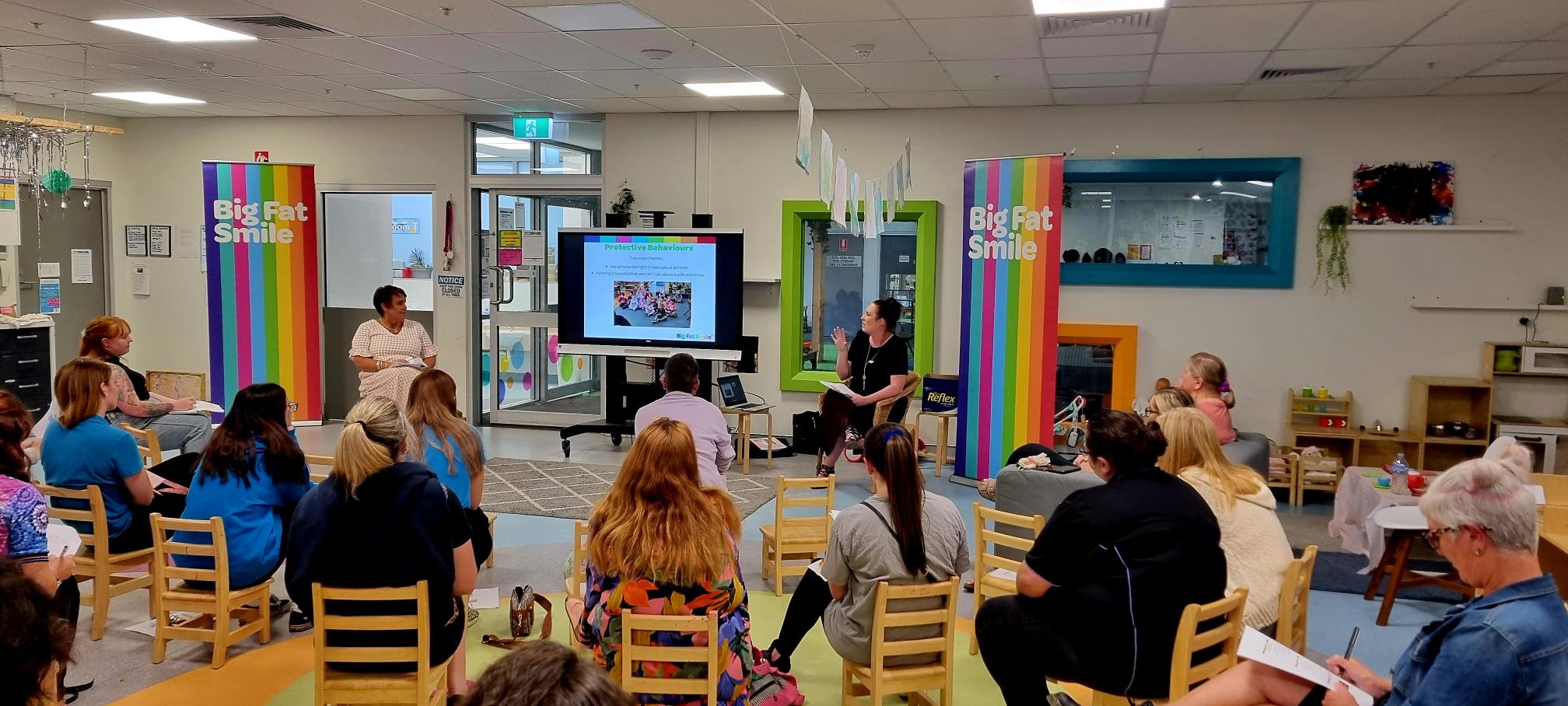 40 Early Childhood professionals came together on Thursday night to learn more about supporting children with protective behaviours. Aligned with our value of connection and demonstrating how we share to grow, it was a successful night, centred around how we see, listen, and talk to children and families with protective behaviour strategies.